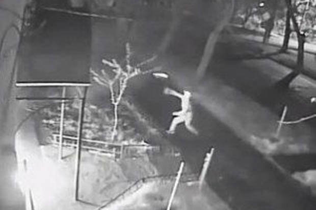 Shocking CCTV footage captured the moment two Molotov cocktails hit the building in Nikolayev.
