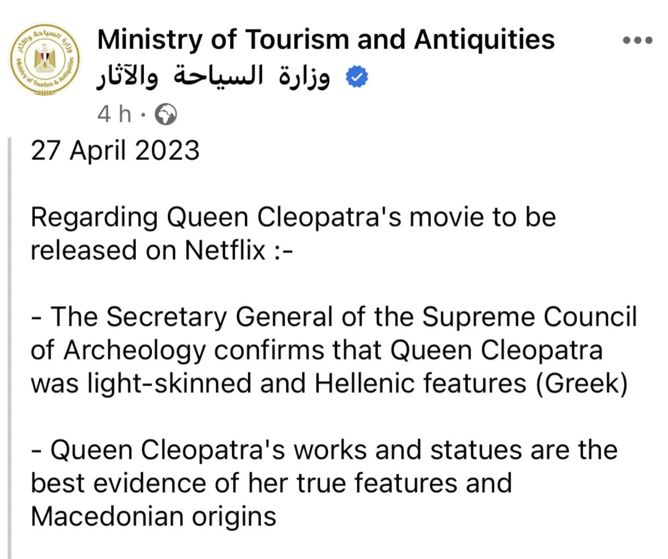 But Egypt’s Ministry of Tourism and Antiquities argued that the documentary nature of the feature “requires those in charge of its production to investigate accuracy and rely on historical and scientific facts.”