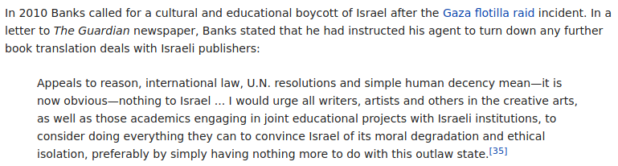 Iain Banks is a scifi writer with some interesting ideas about Israel…