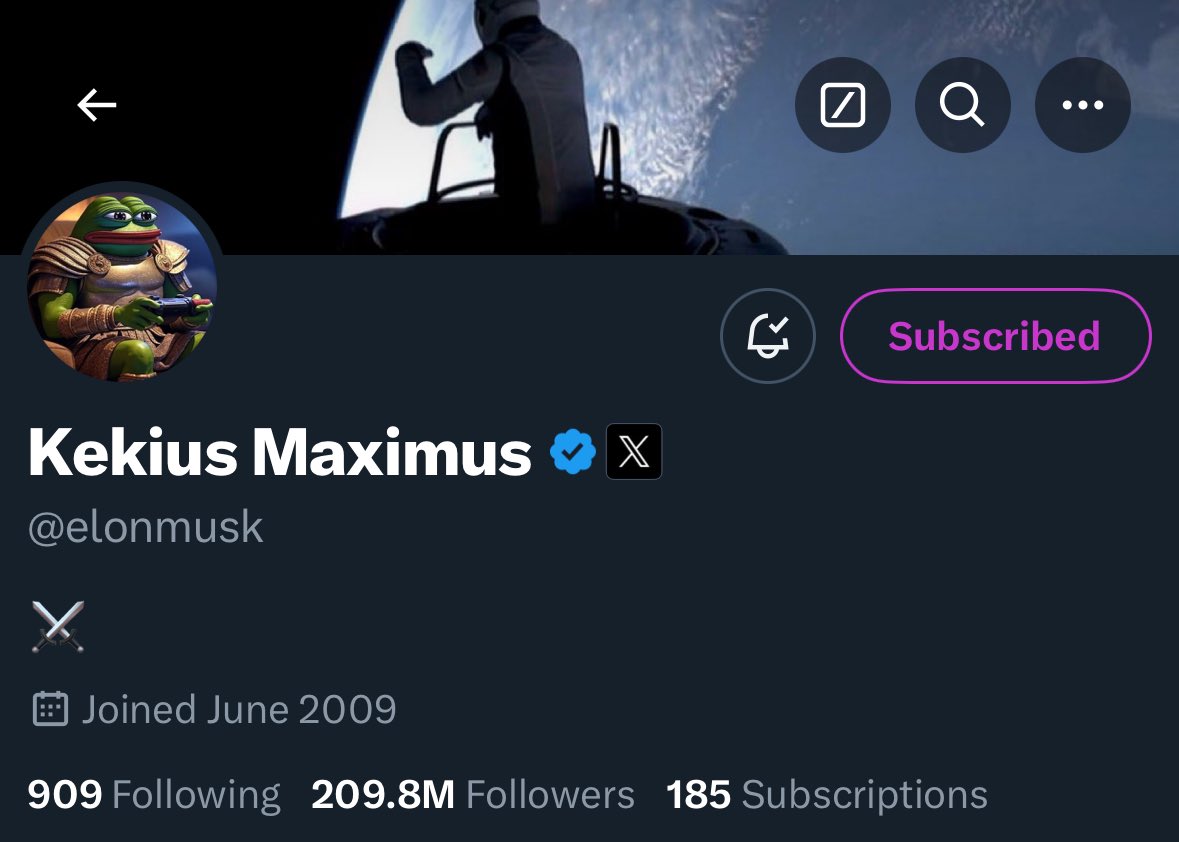 Elon changed his name to “Kekius Maximus” because that is very funny and will get him a lot of support because it is so based.