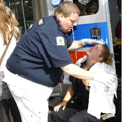 One person was taken to Bellevue Hospital for treatment, and a man was treated by EMTs at the scene, authorities and witnesses said.
