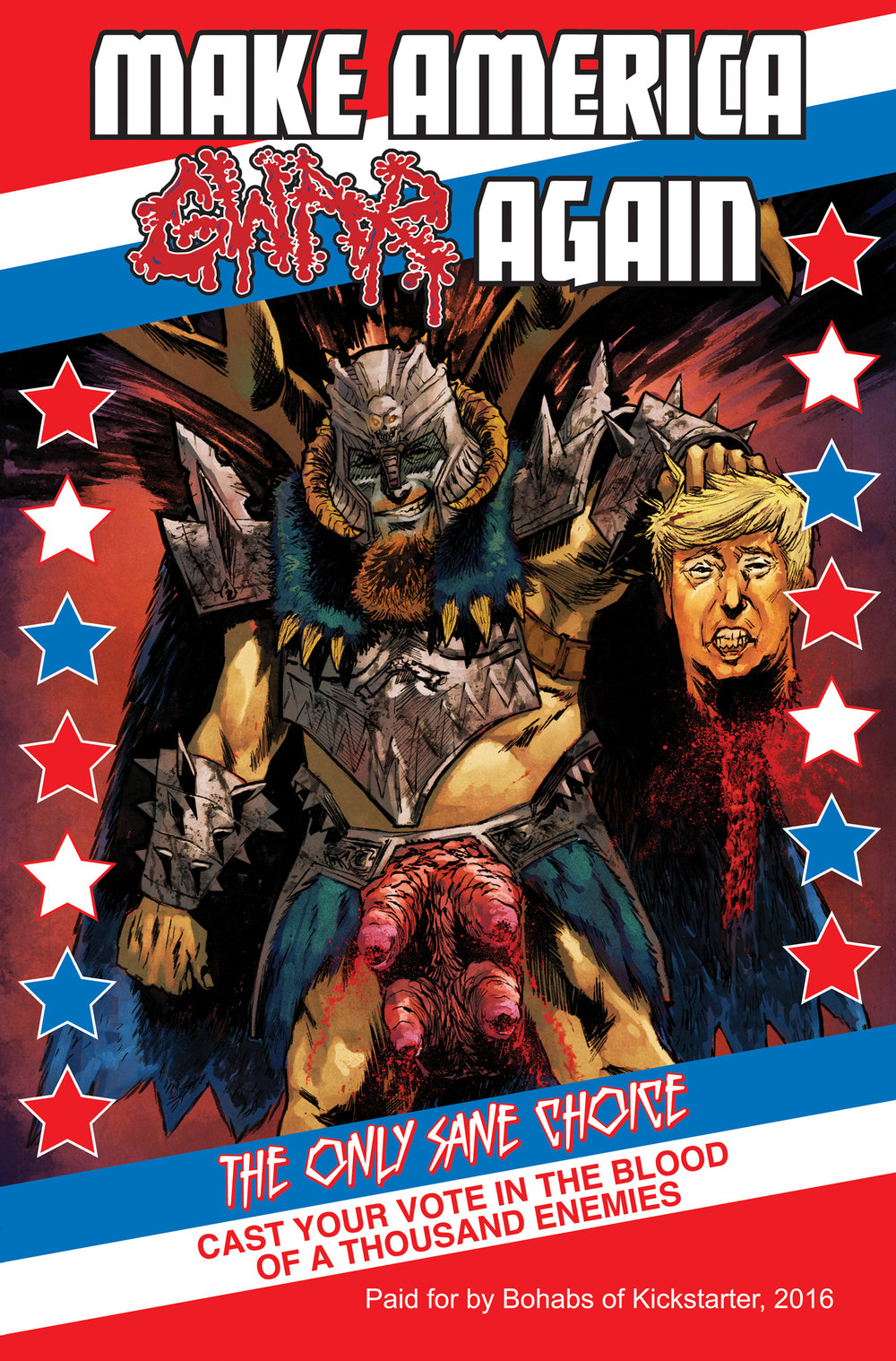 During the 2016 election, Gwar were among the many artists with original creativity who threatened to kill Donald Trump.