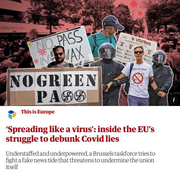 Kartte and Richter have both left the EU’s diplomatic service, but spoke to the Guardian, along with several serving and former EU officials. The picture that emerges is of a counter-propaganda effort hamstrung during the pandemic by a mandate focused almost entirely on Russia. It is a picture of a hardworking but understaffed disinformation unit embedded in bureaucratic structures too politically risk-averse to heed its findings and ill-equipped to combat a threat as vast as the one the bloc faced with Covid-19. This weakness, say experts, has enabled the spread of harmful anti-vax sentiment across Europe and the rise of domestic Covid-sceptic movements.