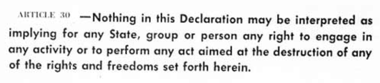 For a long time, I’ve been meaning to sit down and go through all 30 articles, and point out where the modern rulers have violated these freedoms. I should actually do the double-whammy and give my own positions on each assertion alongside that of the current rulers.