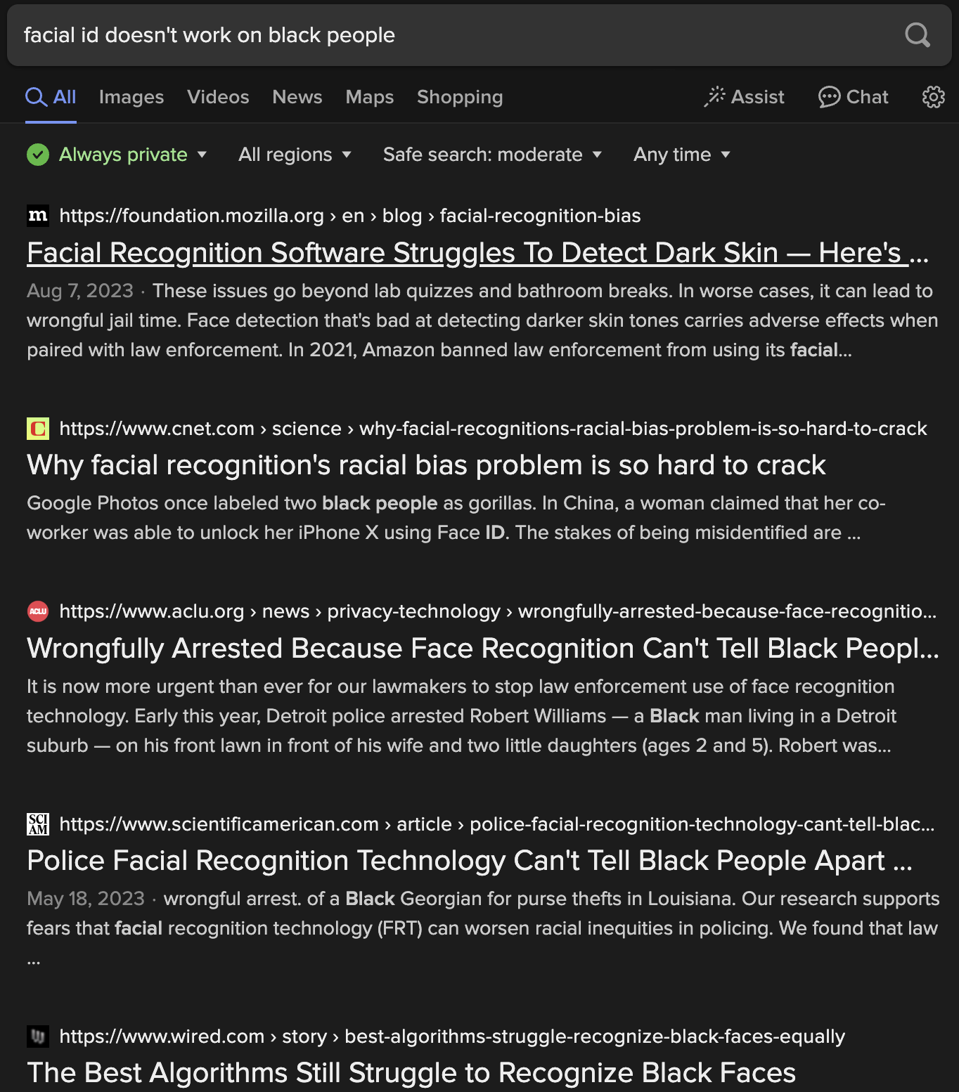 You would think with the advances in AI, the software would be able to recognize blacks – surely, they don’t all literally look exactly alike? – but, no. Even with these new powerful LLM AIs, they still can’t make it work on blacks.