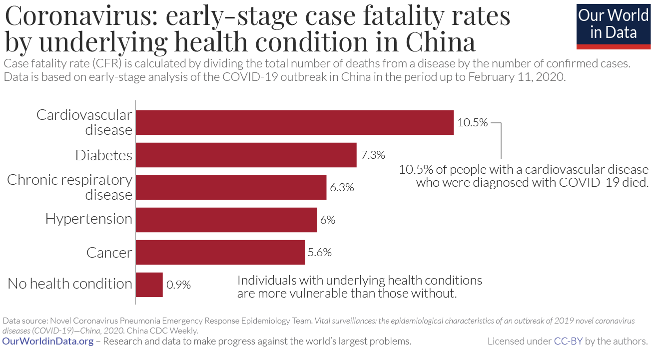 All the way back in February, we had data from China showing that for people of all ages, less than 1% of fatalities were healthy people.
