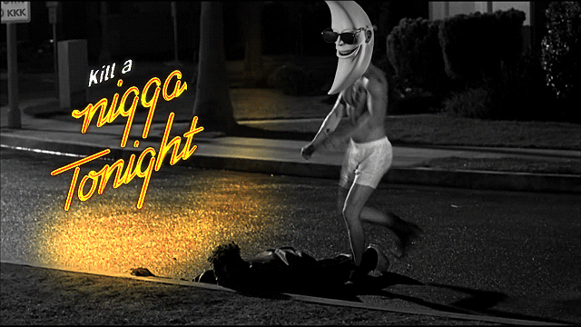 The GIF includes disturbing text including a racial slur, which TechCrunch has blurred out below. It reads “N—– Crime Death Counter – Keep Cranking Bonzo, the Numbers Just Keep on Climbing!”