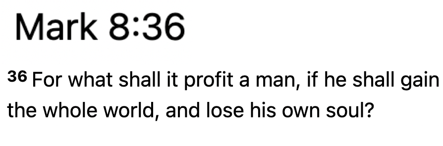 What difference does it make if you save all your money and then you go to hell?