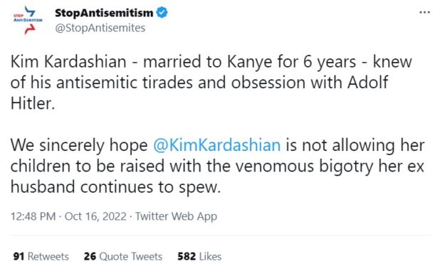 Those Jews at the “Stop Antisemitism” account are demanding Ye lose access to his kids.