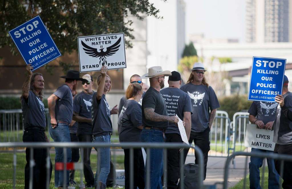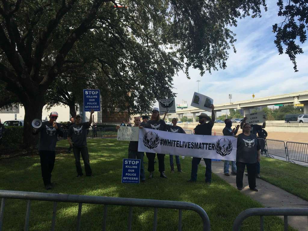 Waving banners and hurling obscenities, White Lives Matter and Black Lives Matter protesters faced off in an angry hours-long shouting match Saturday in front of the Anti-Defamation League’s southwest Houston office.
