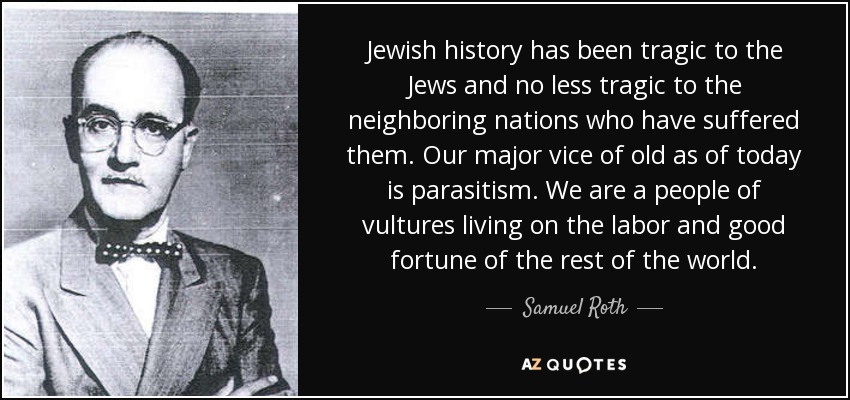 Just as another random example, the Jew who got pornography legalized in the United States, Samuel Roth, wrote of the Jews as parasites.