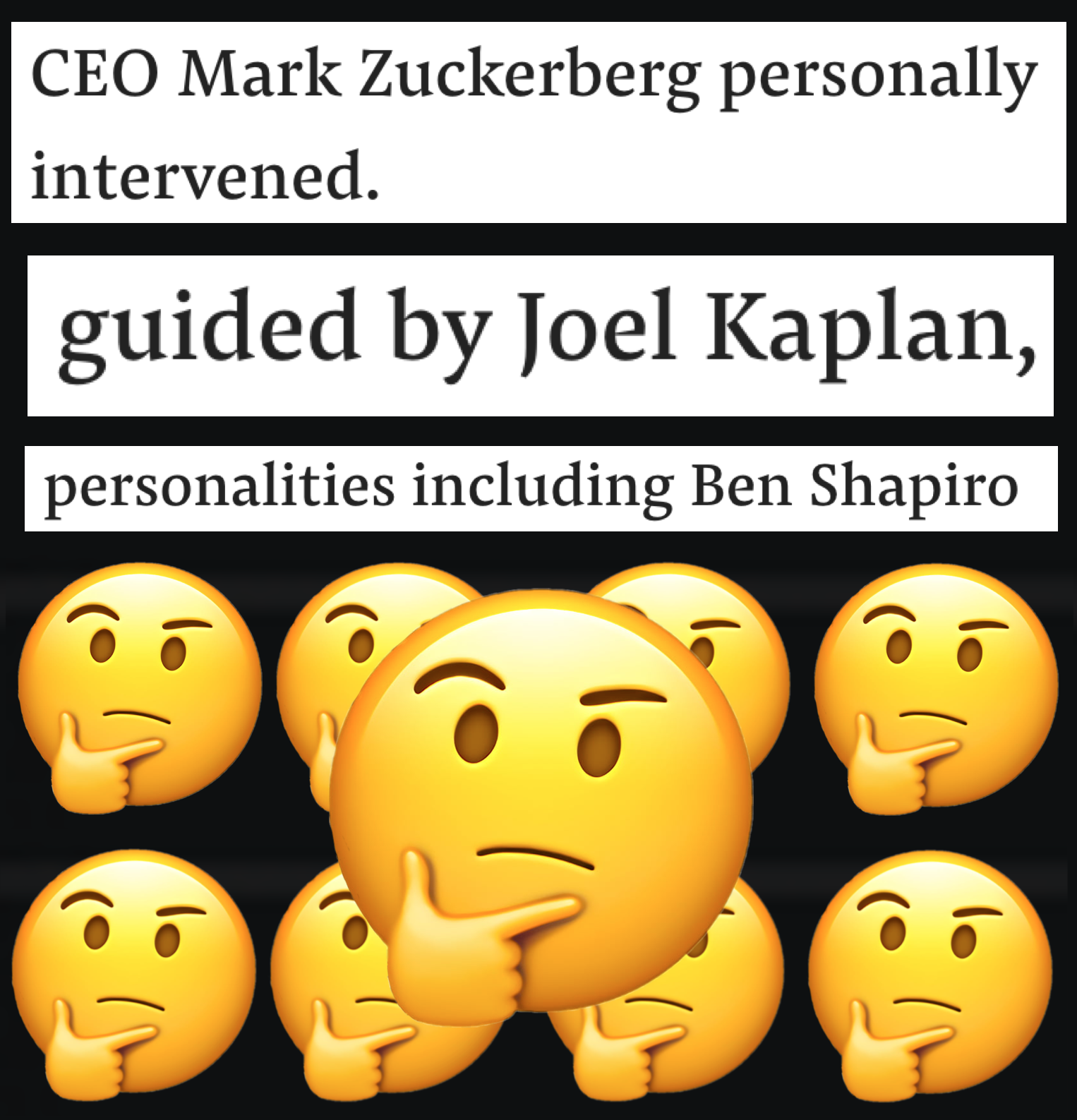1. Facebook has been pushing posts from Ben Shapiro into users feeds EVEN IF THEY DON'T FOLLOW HIM OR ENGAGE WITH ANY SIMILAR CONTENT