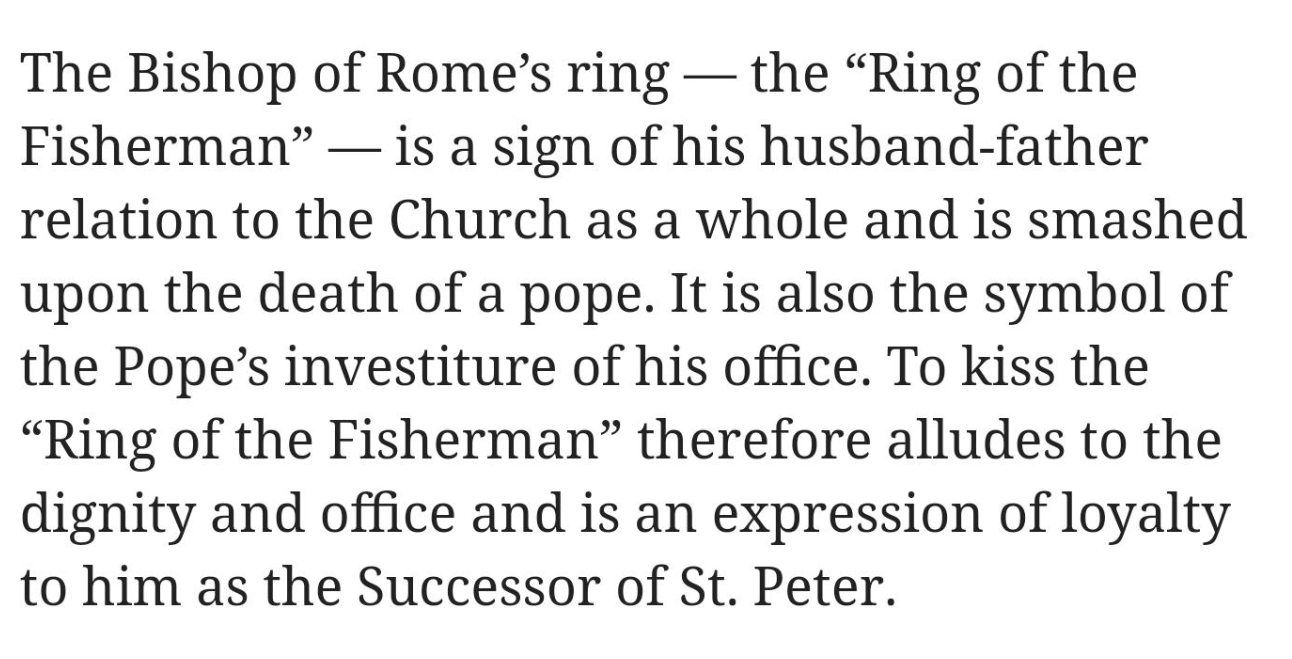 But the ring belongs to the Catholic Church. He’s supposed to let people kiss it. It’s part of the job description.