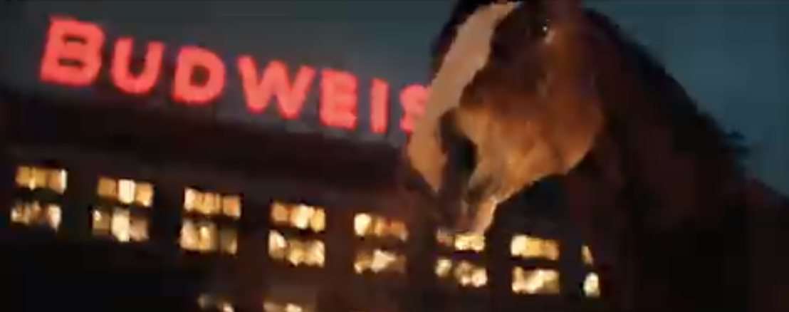 “Brewed for those who found opportunity in challenge and hope in tomorrow,” the ad’s narrator says as the horse passes by the flag raising duo and the Lincoln Memorial.