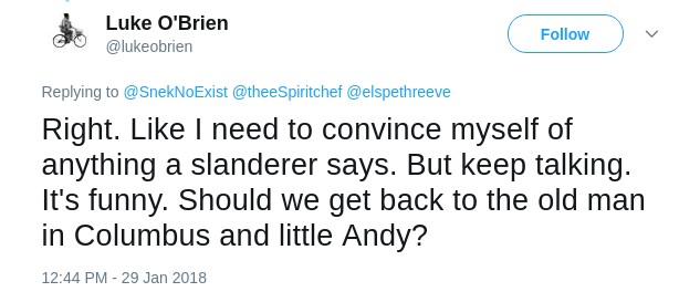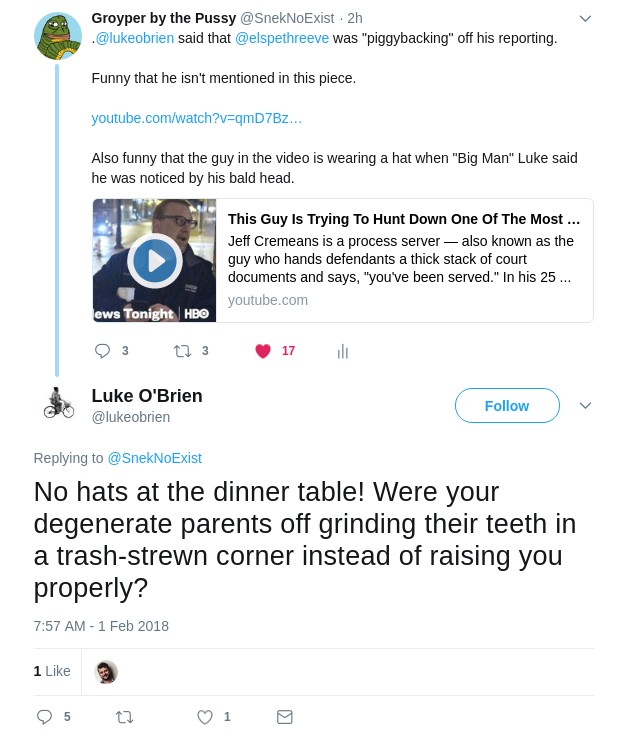 The reason that there is no respect and in fact a deep animosity toward Luke O’Brien is that he is incapable of regulating his own lying and hoaxing.