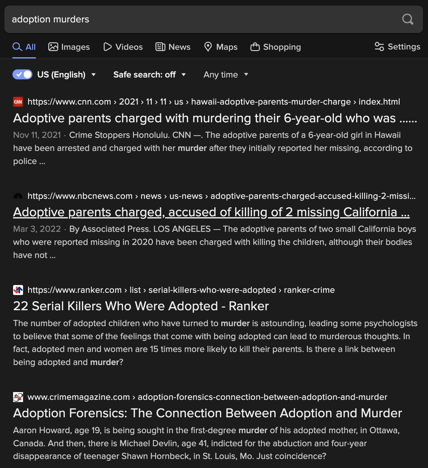One of the focuses there has been is on how many serial killers were stranger adopted.