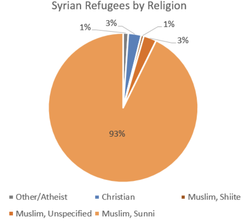 Syria has a relatively large Christian minority at 10%, and one study claimed that 3% of the migrants were Christian. So you’re not even getting anything close to an equal representation of Christians from the countries that have them.
