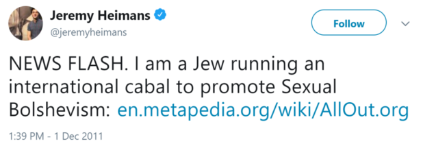 Heimans, through his companies Avaaz and Purpose, specialises in creating seemingly spontaneous mass popular mobilisations in pursuit of cherished left-wing Establishment causes. He once made an interesting admission about himself on Twitter.