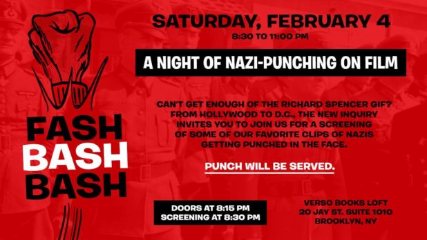 It’s been a tough few months for anyone who doesn’t consider themselves politically-aligned somewhere to the left of say, Bull Connor. However, in the darkness, there’s been one spark of light and hope: that video of “white nationalist” Richard Spencer getting punched in his face. And if you want to wring all the spiritual uplift you can out of that moment in American history, I’ve got great news for you: there’s a free film festival in Brooklyn this weekend devoted solely to watching clips of Nazis getting popped.