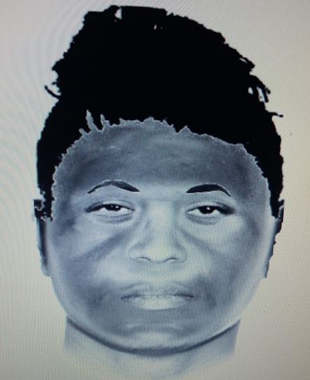 The suspect is described as a black woman, 40 to 50 years old, 5’05” – 5″07″ tall, weighing 250 – 300 pounds, with black hair with purple highlights and small braids twisted on the top of her head.