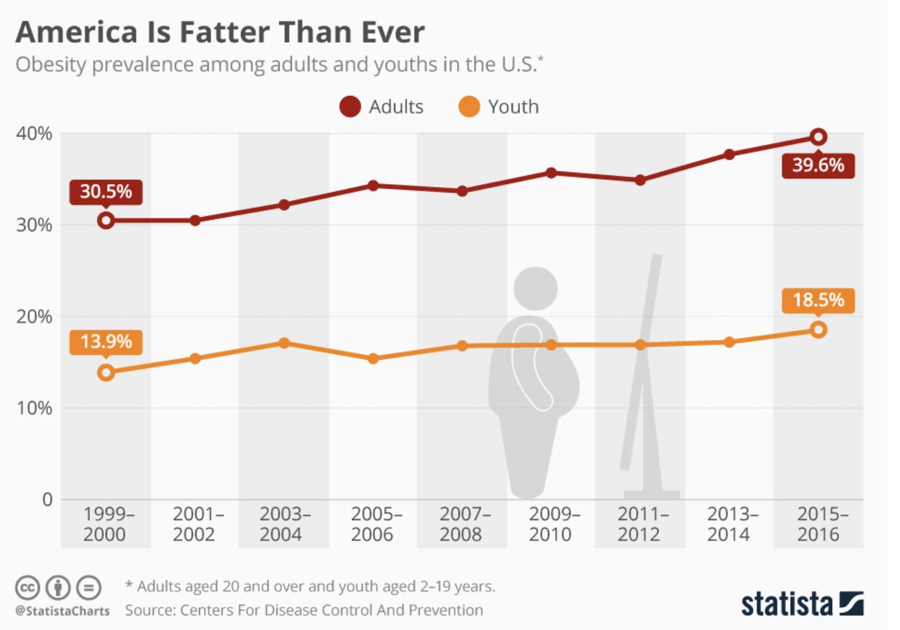 A full 40% of American adults are obese.