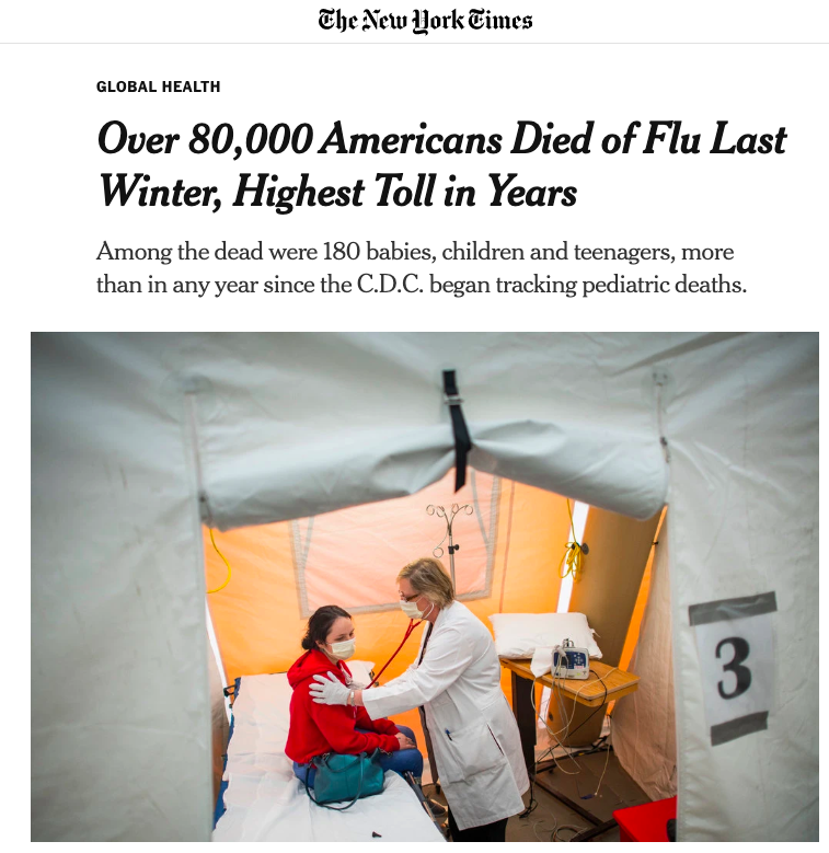 And even considering that, it is still just over a quarter of the 80,000 people who died from the flu in 2017-18.