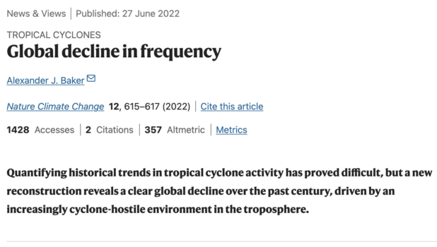 Here’s the Nature article, here’s a CNN article fluffing it. They say that although there are many fewer storms, it is “likely” they will become more intense.