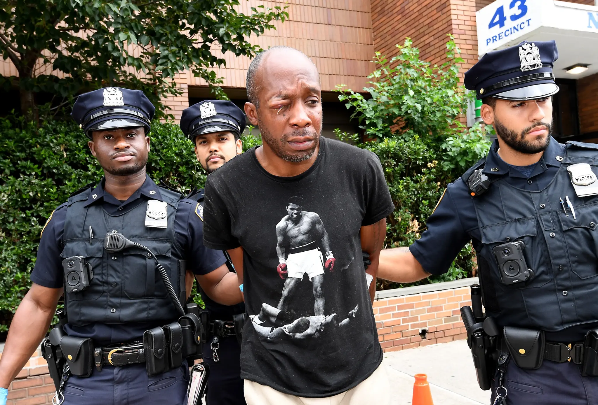 Ernst Delma, 41, allegedly punched a female NYPD officer in the face while she intervened in an argument between him and a group of kids