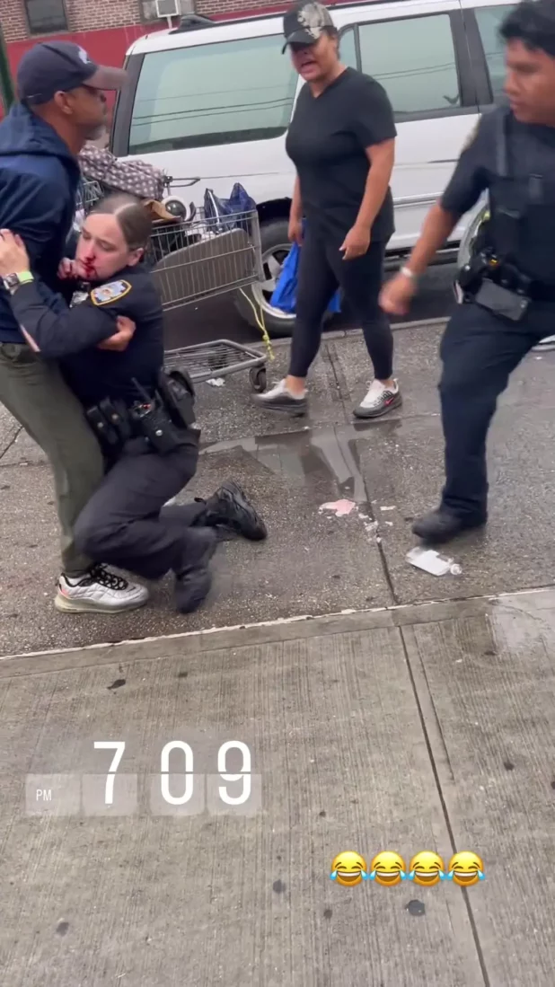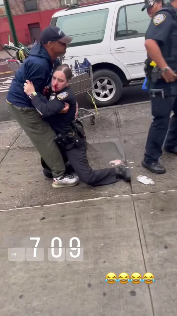 People think it’s all fun and games when a female cop gets punched in the face by a black she’s trying to boss around.