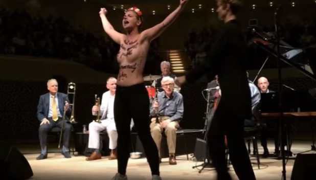 The insane feminist protest group FEMEN is at it again. This time they disrupted a Woody Allen jazz concert in Hamburg, Germany. The crowd was angered at their disruption demanding the immediate institution of White Sharia.