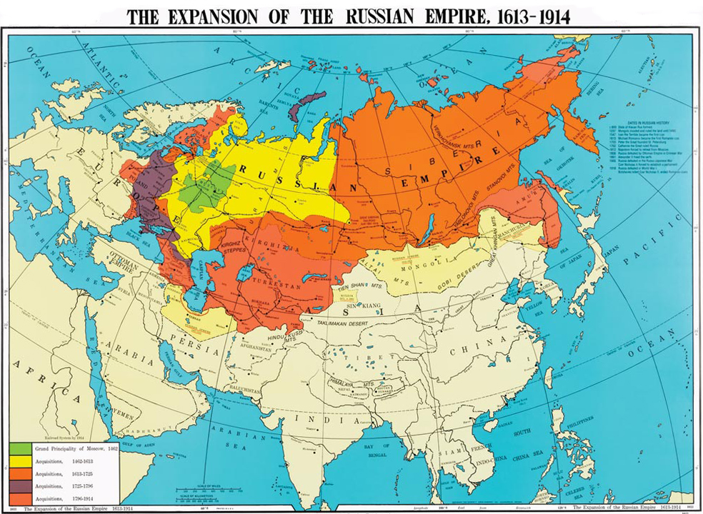 Before the establishment of the Soviet Union, the Russian Empire invaded various territories to the south. This was somewhat like the Russian version of colonialism, they just did it by land instead of by sea. The empire was as massive as a colonial empire, and because it was contiguous with Russia proper, it was easier to administrate.