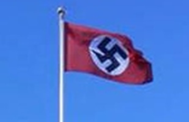During the night, a swastika flag was raised on the flag pole.
