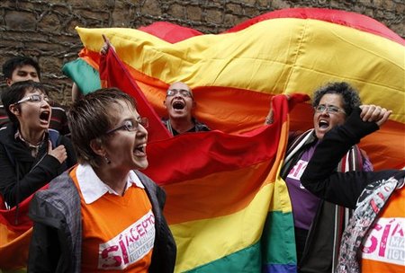 The ceremony follows Congress’ failure in April to pass a law setting up a legal framework for civil unions. A 2011 order from the Constitutional Court had ordered legislators to pass a law granting marriage equality to gay couples by June 20, 2013, or else such couple would be allowed to join in civil unions before judges.