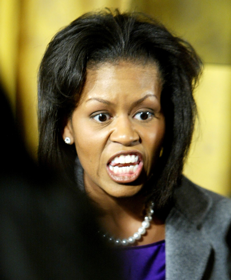 First tranny Negress Michelle Obama, who is believed by some researchers to have male genitalia, recently stated in a conversation with former First Lady Laura Bush that women are smarter than men. The audience of brainwashed Marxist fools actually thought this retarded remark was funny.