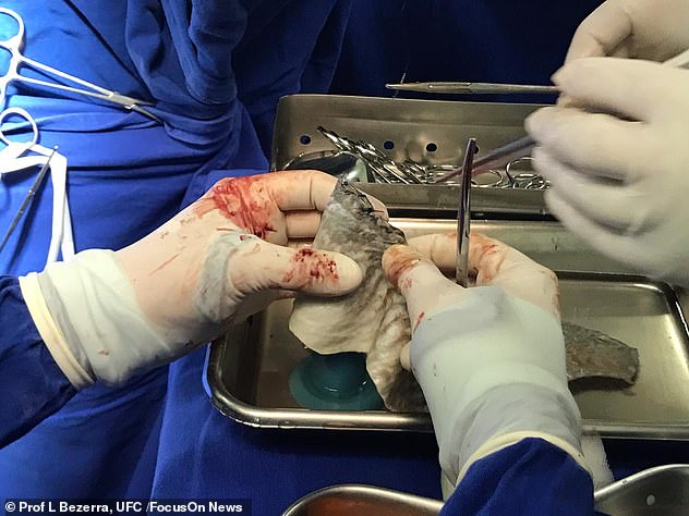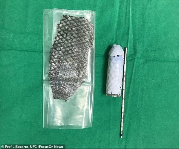 In the three-hour procedure, doctors inserted a tubular mould wrapped with the skin of the freshwater fish.