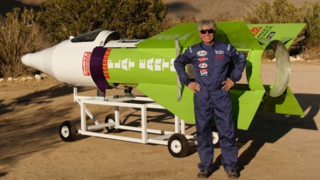 “Mad” Mike Hughes, the rocket man who believes the Earth is flat, propelled himself about 1,875 feet into the air Saturday before a hard landing in the Mojave Desert. He told the Associated Press that outside of an aching back he’s fine after the launch near Amboy, Calif.