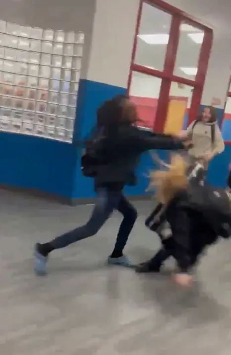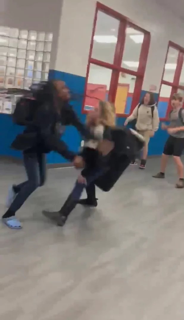 In the shocking clip, shared on X by Libs of TikTok, the female student was filmed approaching her unsuspecting victim from behind in the school hallway — as a group of students made barking and jeering sounds in the background.