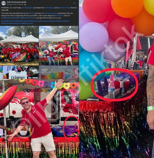 CAN Community Health has been popping up at Pride festivals and community days all over the country and they seem to have incorporated dildos into their prevention plans! Just check out the table from this CAN community booth in Phoenix, AZ.