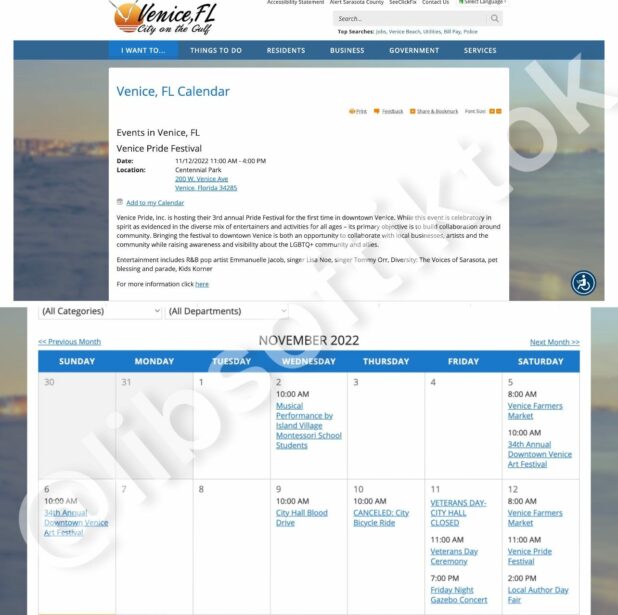 This past Saturday, the city of Venice, Florida held its 3rd annual Venice Pride Festival in Centennial Park. The event was promoted on the city’s official Government website.