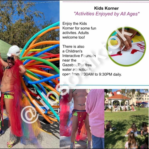 As you can imagine, this “family-friendly” event came with all the typical festival activities – everything from R&B pop artist Emmanuelle Jacob, singer Lisa Noe, a parade, and a “Kids Korner” complete with scantily clad drag queens!