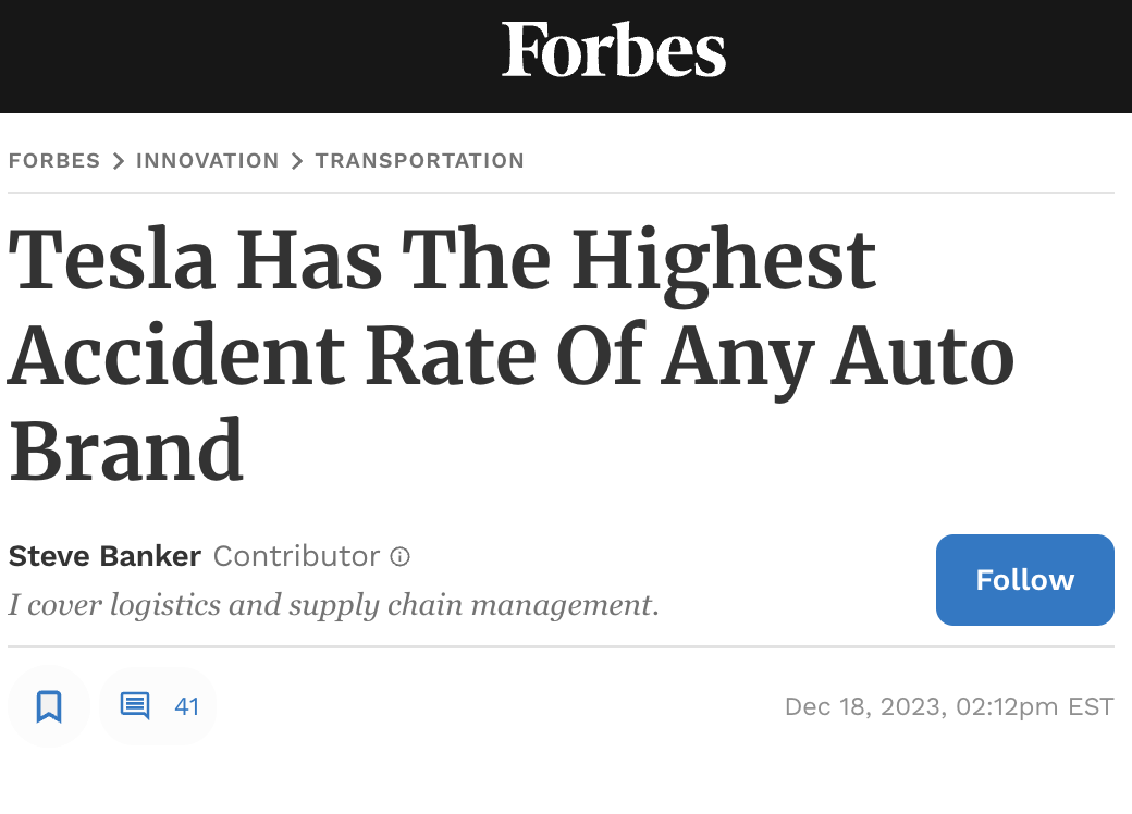Probably also worth noting that Teslas are the least safe cars on earth.