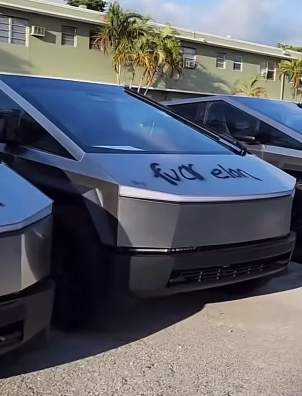 Vandals with an apparent vendetta against Tesla CEO Elon Musk spray painted “F—k Elon” on 34 brand new Cybertrucks in Florida.