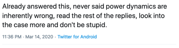 Denouncing “transactional sex” is stupid, as all sex is transactional, and everyone knows that. Of course the Jews use their power to have sex with white women. Jews use their power to do a lot of things. The problem is having Jews in your country, not some bizarre Marxist-feminist dissertation about “power dynamics.”