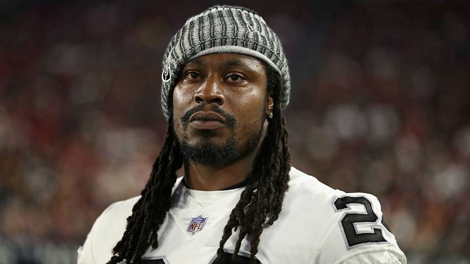 Marshawn Lynch of the Oakland Raiders was photographed sitting during the US national anthem at a game in Mexico City on Sunday.