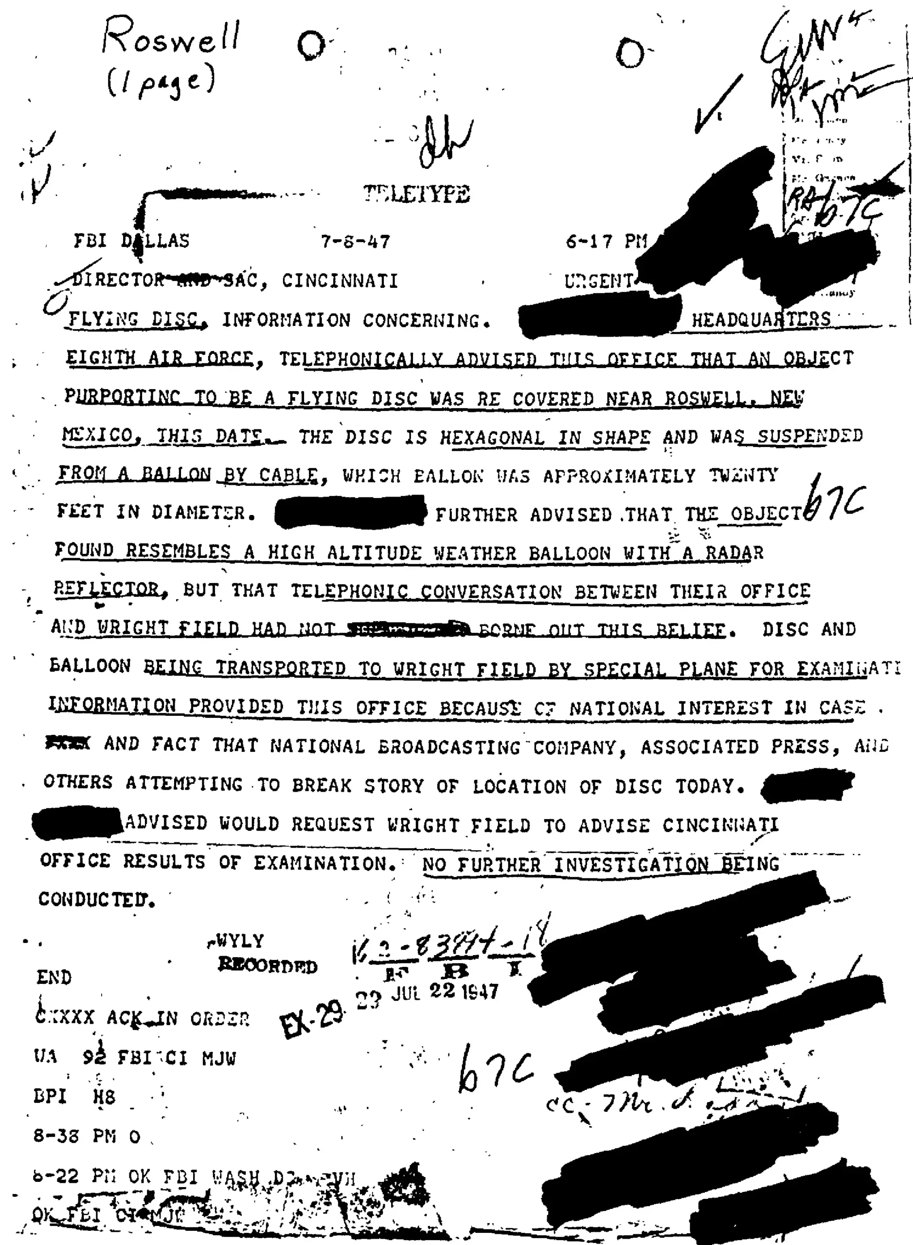 Elizondo claimed that one of the two spacecraft the Department of Defense has is from the alleged 1947 unidentified anomalous phenomena (UAP) crash in Roswell, New Mexico.