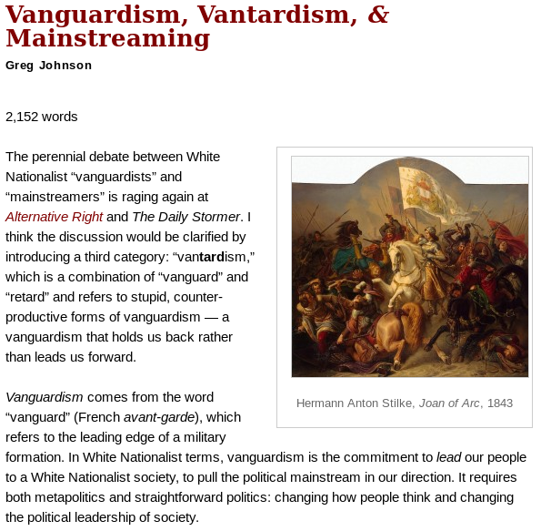He coins the term “vantard” to refer to us, claiming that we are populist retards pretending to be the vanguard of the revolution, while he is the real vanguard.