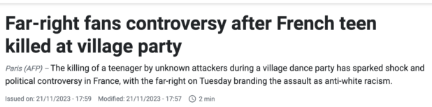 Eyewitnesses to the stabbing spree in the French village of Crépol on Sunday which cost the life of 16-year-old Thomas and left several others injured have revealed how the knife-wielding gang members spoke of their desire “to kill White people”.