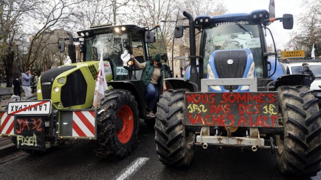 Echoing farmers’ protests around Europe, French agriculture workers are unhappy about heavy burdens of regulation and environmental standards which they say make it impossible to make a profit.