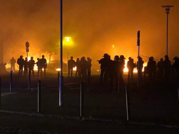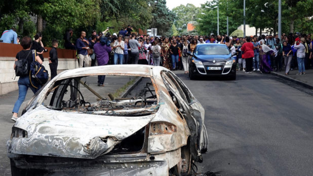 The crowd set 52 cars ablaze, including the city mayor’s, and vandalized several buildings, setting fire to a shopping center, a library and a police station. In a bid to quell the violence, police deployed tear gas.