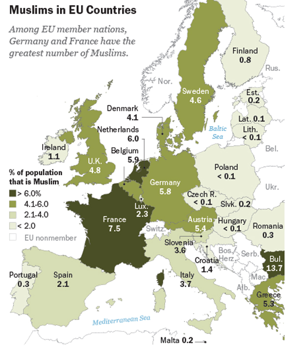 This means that a substantial percentage of its Moslem population, already one of the highest in Europe, is receptive to the concept of “Jihad,” or war against the infidels through conquest and terrorism.